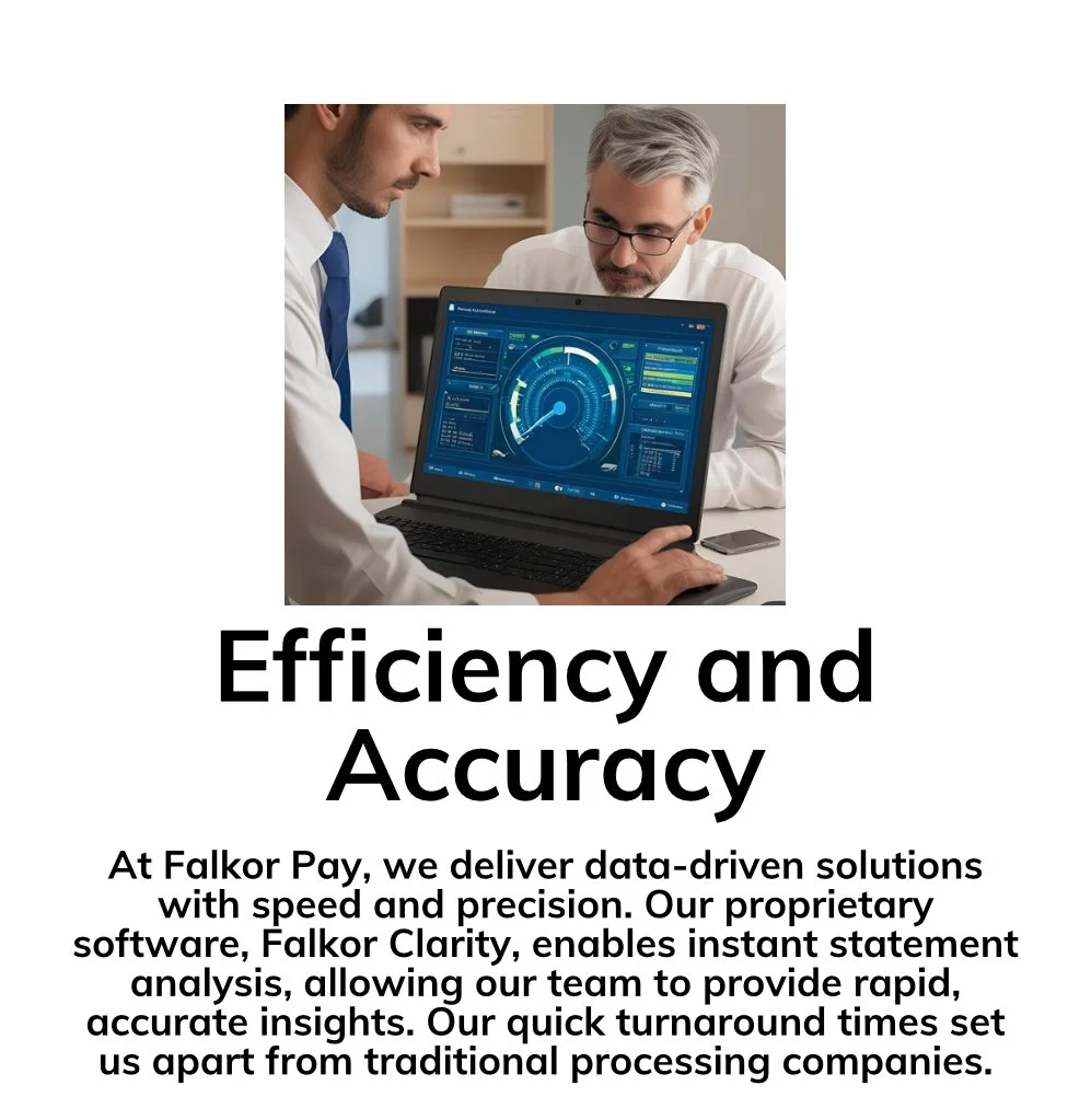At Falkor Pay, experts use our proprietary AI-driven software, Falkor Clarity to audit merchant services statements with precision. In seconds, we analyze every line item, verifying interchange charges and distinguishing between fixed and negotiable rates. This enables us to identify overcharges and significantly lower payment processing costs for businesses.